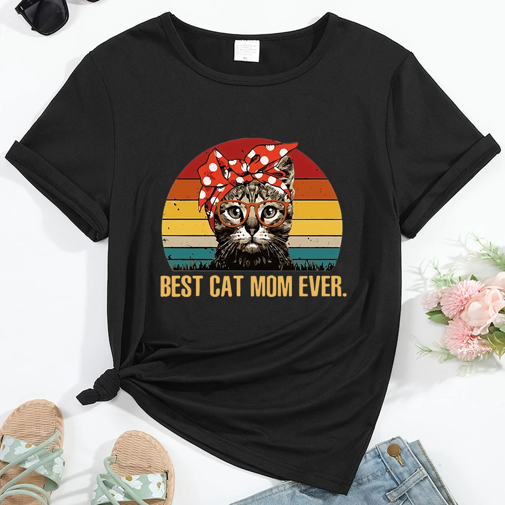 Women's T-shirt Best Cat Mom Ever Pattern Print Round Neck Casual Comfortable Breathable